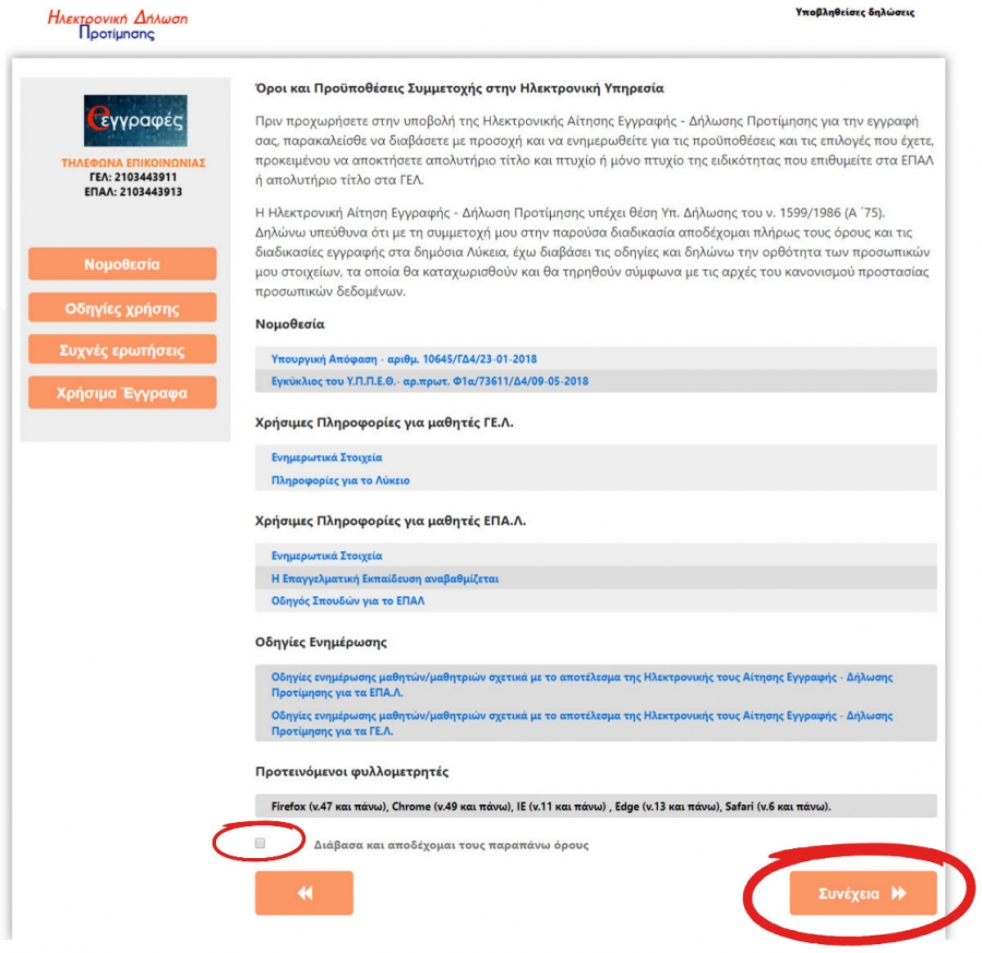 γ) Για τα Πειραματικά, Πρότυπα, Μουσικά, Καλλιτεχνικά Σχολεία και Σχολεία Διαπολιτισμικής Εκπαίδευσης, Ηλεκτρονική Αίτηση, υποβάλλουν οι γονείς/κηδεμόνες των ανήλικων μαθητών/- τριών ή οι ίδιοι/-ες οι μαθητές/-τριες, εφόσον είναι ενήλικοι/-ες, που φοιτούν στη Γ΄ Τάξη Γυμνασίου, στην Α΄ Λυκείου και στη Β΄ κατά το τρέχον σχολικό έτος 2018 – 2019, δηλώνοντας εάν επιθυμούν να συνεχίσουν τη φοίτηση σε ίδιου τύπου σχολείο ή επιθυμούν να εγγραφούν/μετεγγραφούν σε άλλο ΓΕ.Λ. ή ΕΠΑ.Λ.
